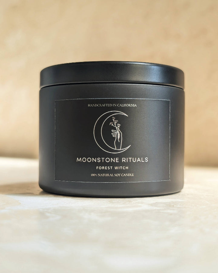 This is a 4oz tin version of our Forest Witch candle (great for travel).