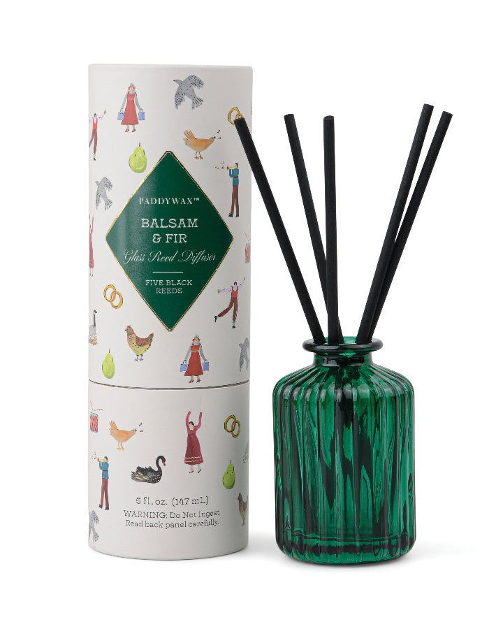 Green Ribbed Glass Diffuser - Balsam & Fir