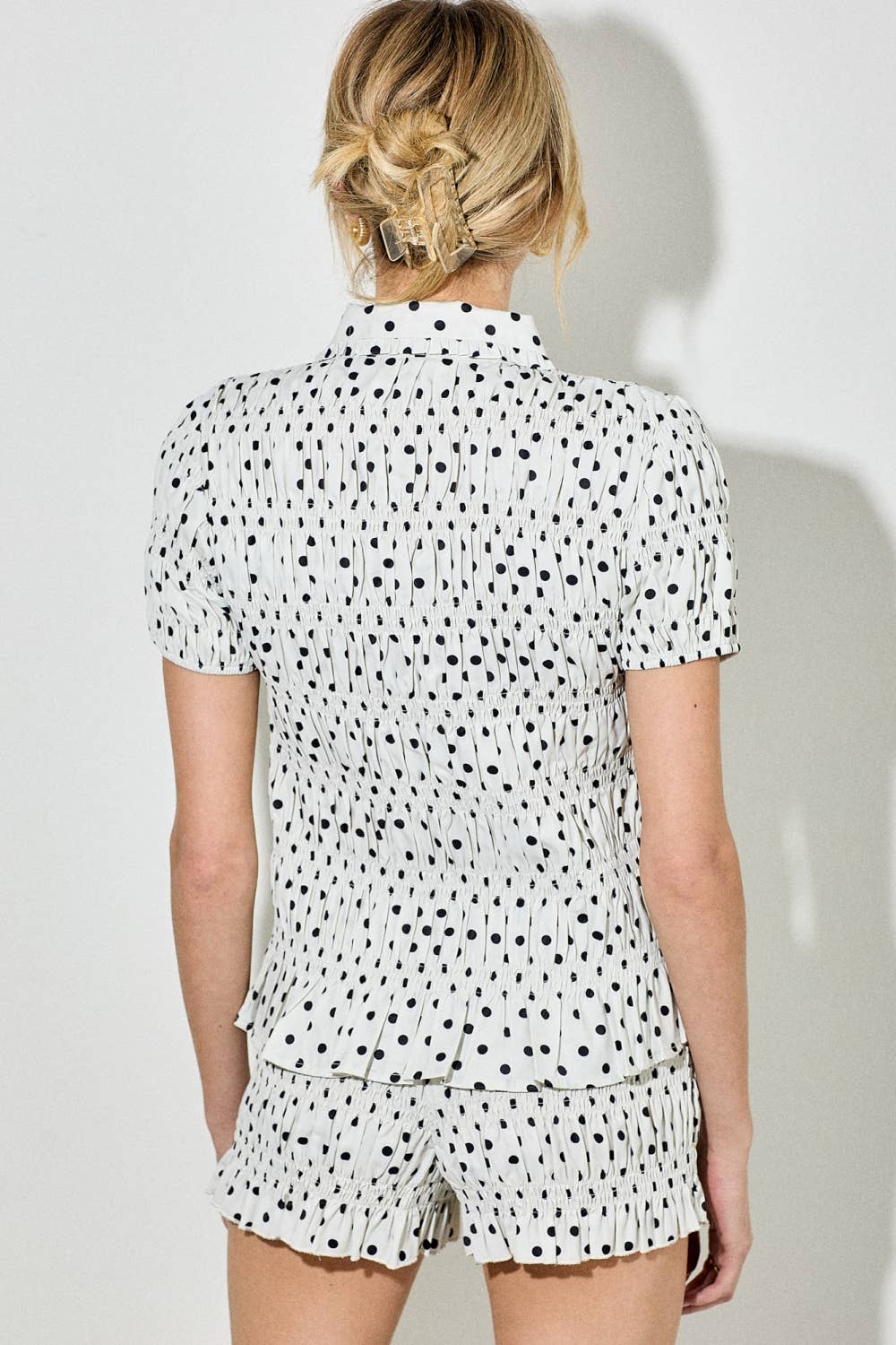 Polka Dot Smocked Collared Top