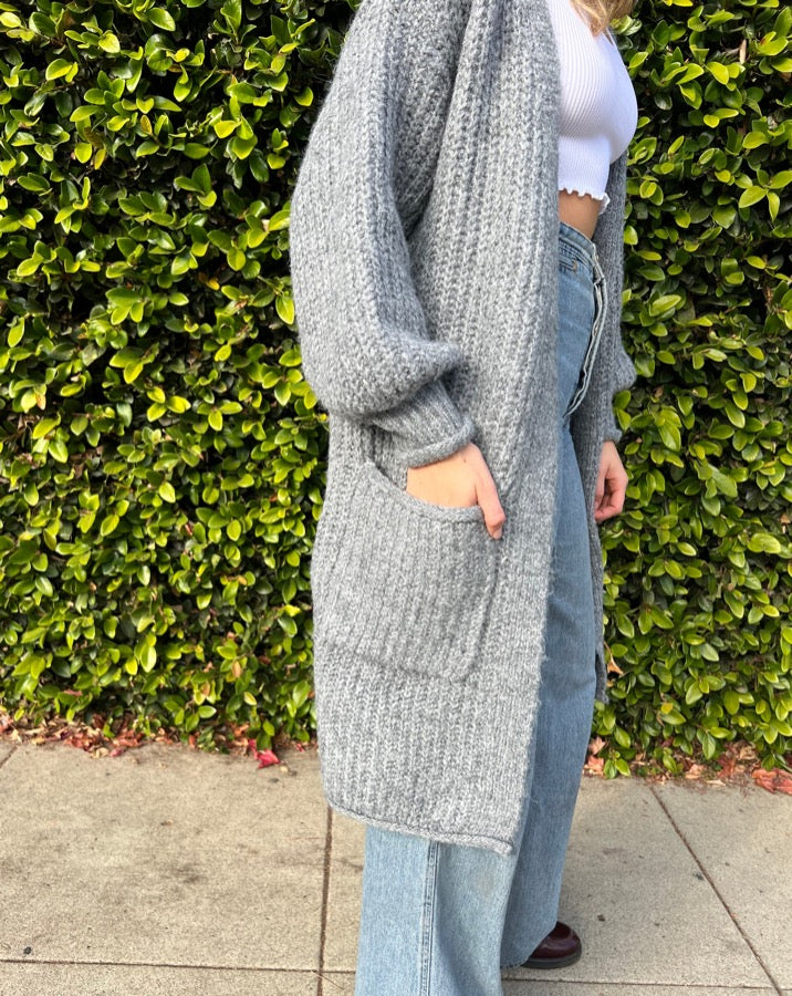 Chunky knit long cardigan with cozy pockets.