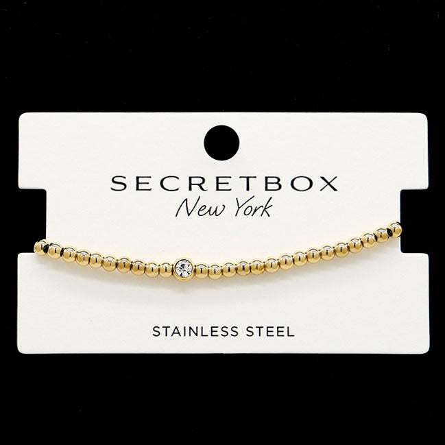Gold Stainless Steel Crystal Ball Bead Bracelet