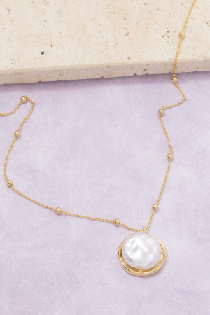 This pendant necklace brings a luxurious gold dipped pearl coin style. Celebrate the art of accessorizing with this piece that effortlessly encapsulates modern trends.
