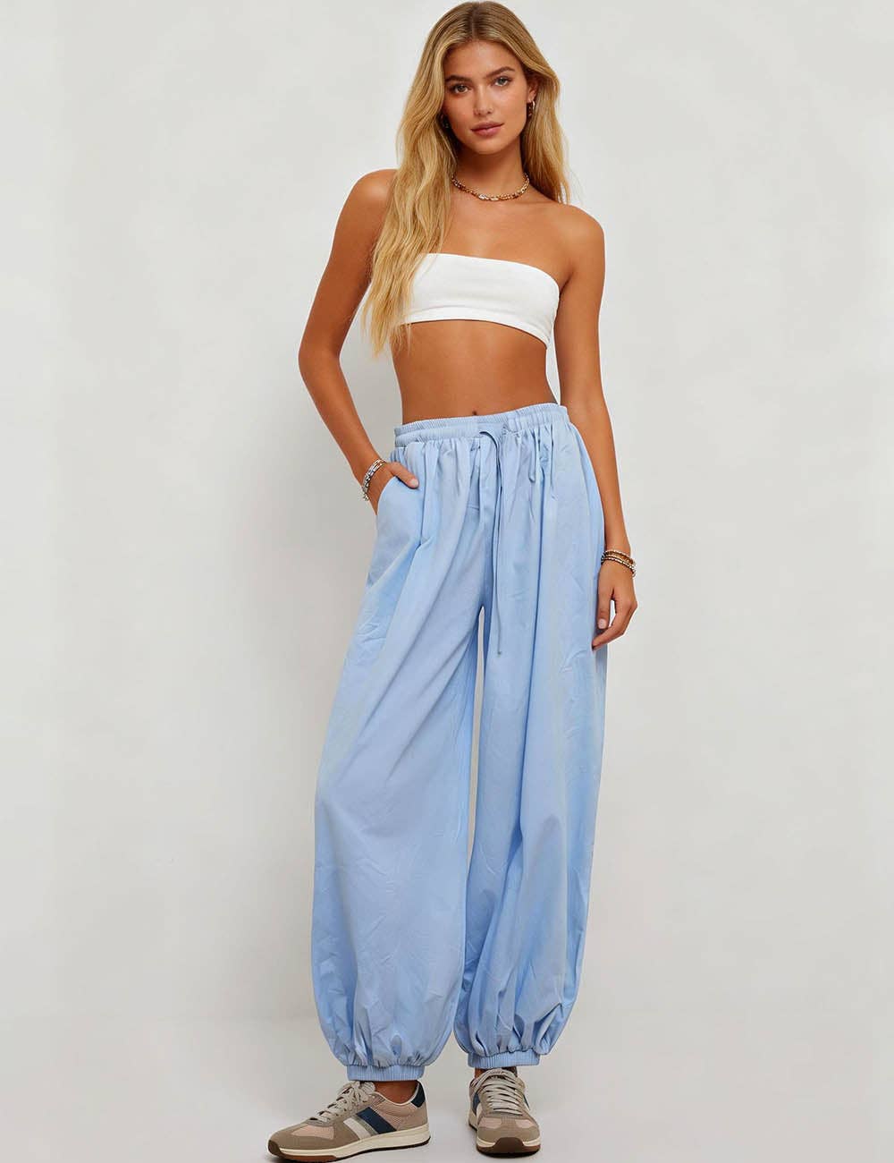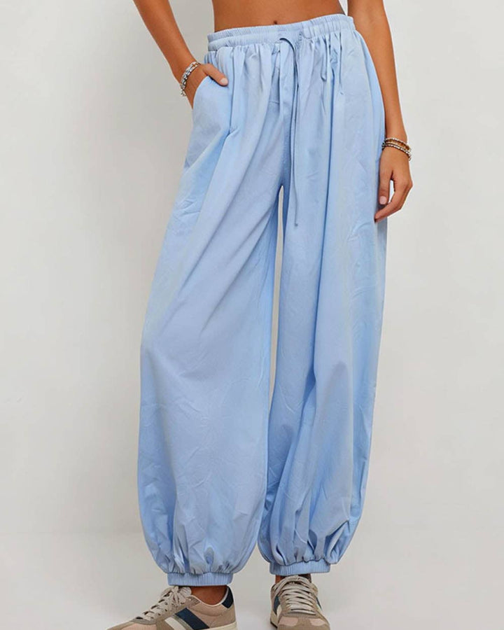 Featuring a relaxed balloon silhouette with tapered ankles, they deliver effortless style whether you're running errands or settling in at home. The soft, breathable fabric keeps you comfortable all day long, while the adjustable drawstring waist ensures the perfect fit!