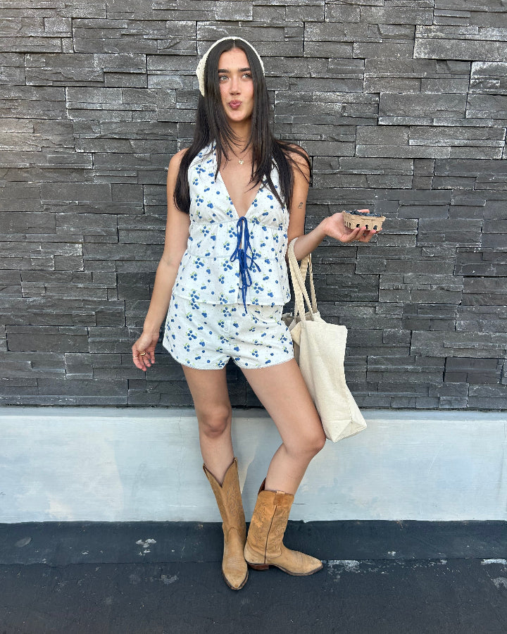 MODEL IS WEARING A SIZE S MODEL SPECS HEIGHT: 5'7 BUST: 34" WAIST: 24.5" HIP: 35"