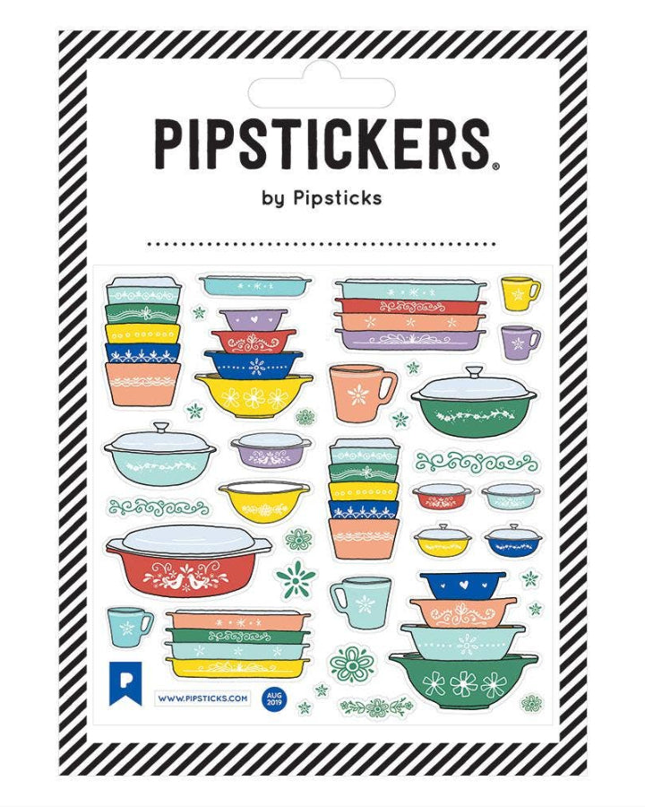 PipStickers are the PERFECT gift for the sticker lover in your life - even if its you! These unique PVC designs with holographic gold foil accents come on a clear backing and cannot be found anywhere else.Includes one 4 x 4 sheet ofVintage Pyrex PipStickers and includes the Pipsticks manifesto.
