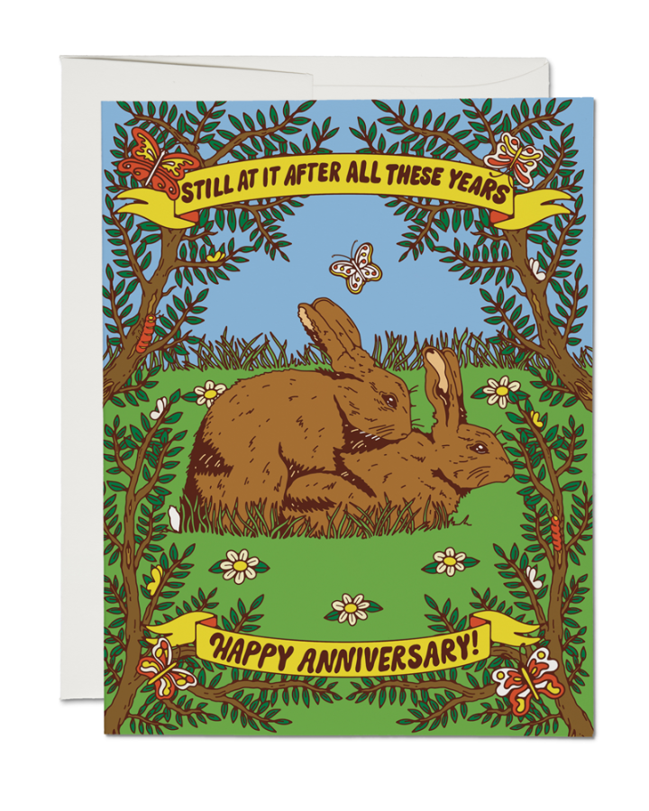 Blank inside. 100lb heavyweight card stock. Offset printed. 5.5 x 4.25 inches. Illustrated by Krista Perry. Printed by Red Cap Cards in Los Angeles, California, USA.