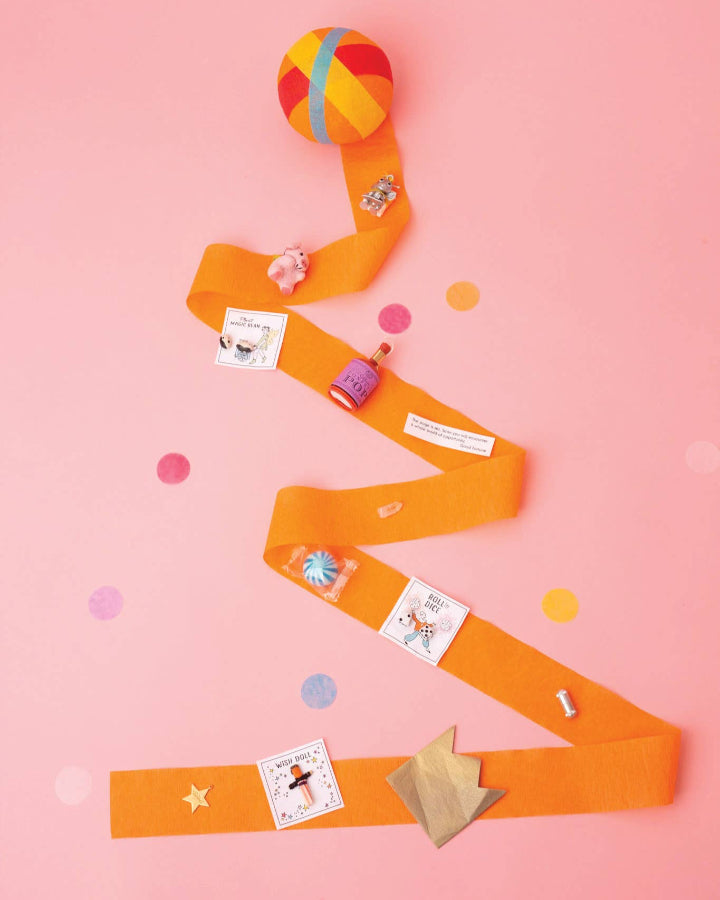 TOPS Malibu’s Deluxe Surprize Balls® offer a whimsical and amusing experience, perfect for adding a touch of fun surprise to all celebrations. Unwind the layers of colorful crepe paper ribbon to reveal a vibrant array of fun prizes for adults and kids. A Surprize Ball® becomes a kid’s favorite gift for every occasion. You will see! Each ball contains an eclectic mix of vintage-inspired toys, gemstones, Little Surprizes™, sweets, tattoos, fortunes, riddles, crowns and other novelties. These Surprize Balls® are not just gifts but an engaging activity that promises joy and anticipation with every layer. TOPS Malibu is the creator of the original Surprize Ball®. They are handcrafted by skilled artisans in the USA, making each one a personal and unique piece. Suitable for Adults & Kids Over 3 Years: contains small parts.