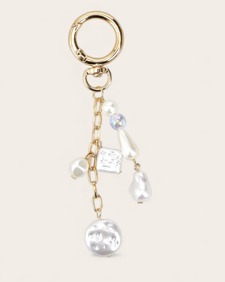 A refined strand of freshwater pearls creates a timeless accent for any handbag or set of keys. This organic pearl charm captures natural luster and simple elegance with polished gold hardware, adding a touch of sophistication to everyday accessories and personal style.
